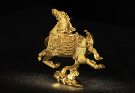 在2025山东工艺美术博览会暨“山东手造”精品展——“荷花杯”山东省工艺美术设计创新大赛中,“经雅黄金”作品以皇家非遗+时尚设计惊艳全场。其中《黄河文脉·敦煌金翼马》从2400件作品中脱颖而出,一举揽获第三届山东省工艺美术设计创新大赛创新创优特等奖。将花丝镶嵌、黄金錾刻等非遗技艺与3D建模、数字化铸造技术相结合,通过0.08毫米金丝双线编织的马鬃、金翼、马鞍,极致精美的满錾毛发与精工镶嵌,既保留了传统工艺的精髓,又融入了现代审美元素。评委专家给予“作品承黄河文脉融敦煌风韵,工艺精致灵动,造型生动舒展”的高度评价。《〈齐鲁仁风〉纯银錾刻水缸》《〈黄河文脉·儒圣昭辉〉摆件》《拍平珐琅——黄财神黄金吊坠》《龙凤宸曜--〈凤栖牡丹〉〈龙腾云瀚》四件作品荣获大赛金奖,《崂山奇景图花瓶》《龙凤呈祥〈凤栖云霓〉〈沧溟龙吟》荣获大赛银奖,《手工岩彩珐琅——扎基拉姆黄金吊坠》获得大赛铜奖。