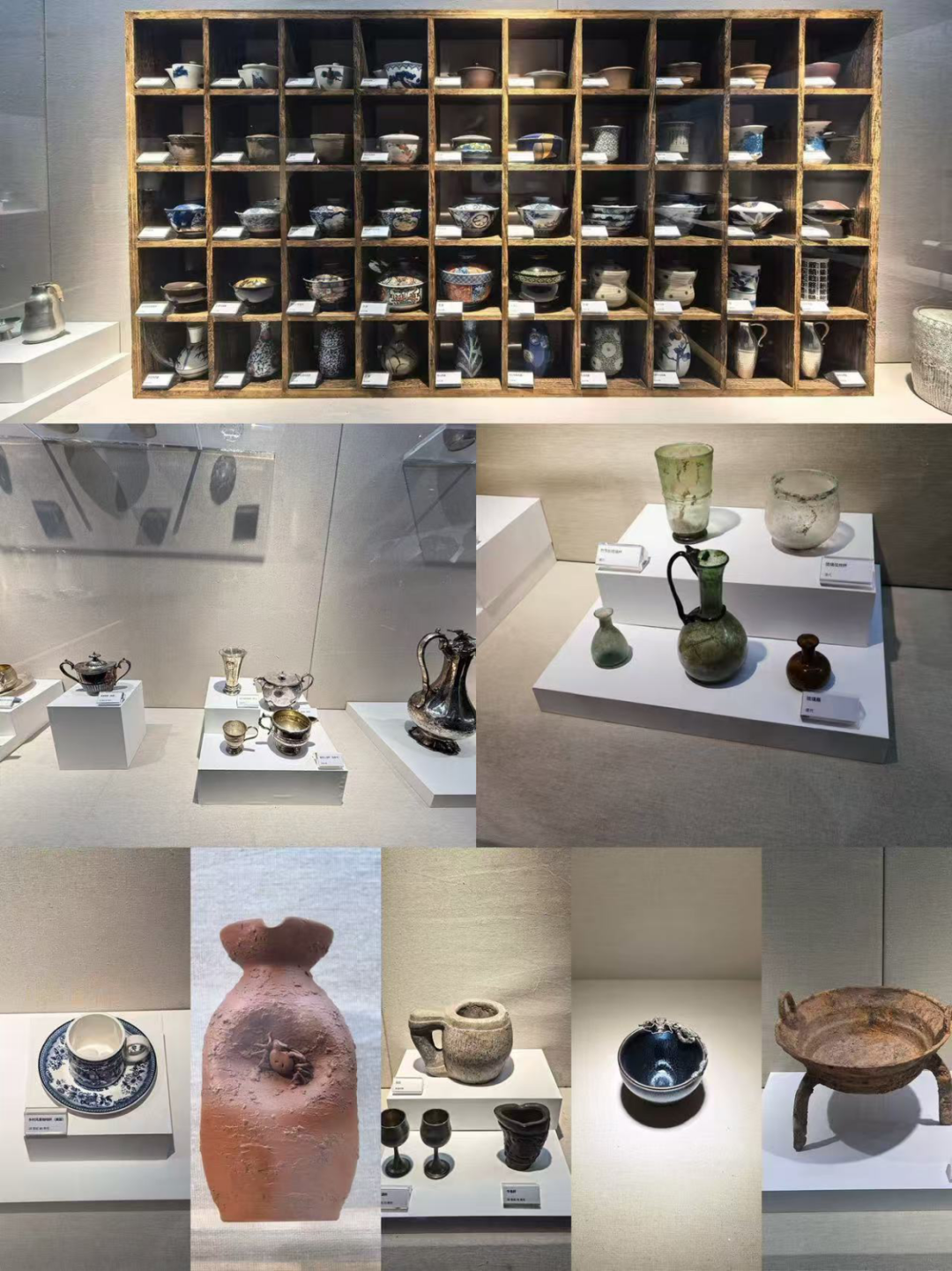 一踏入这座国内唯一的杯子主题博物馆,2100平方米的展陈空间便铺展开跨越五千年的文明长卷。同学们依次探访中国展区、亚洲展区与欧美展区,2000余件珍贵藏品让大家目不暇接:4500年前的龙山文化黑陶蛋壳杯薄如蝉翼,堪称新石器时代制陶工艺的巅峰,唐宋时期的五大名窑瓷杯釉色温润,印证着斗茶文化盛行的风雅岁月;明清珐琅彩、粉彩杯盏则集历代工艺之大成,尽显百花齐放的艺术盛景。海外展区里,欧洲银器的精致雕花、美洲水晶杯的剔透质感,让大家直观感受不同文明的审美差异与互鉴交融。