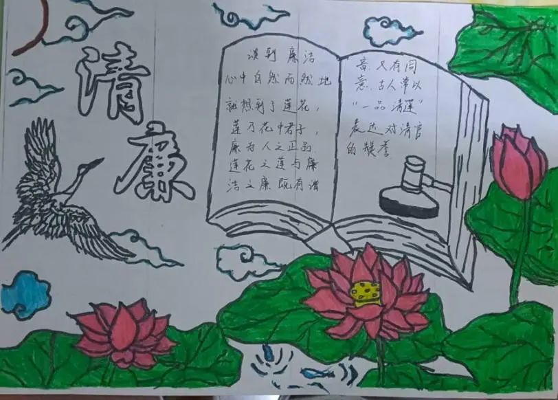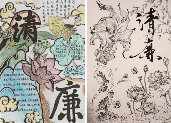 同学们理解“廉洁”的内涵,通过描绘寓意深刻的场景,传递清风正气,在心中筑起崇德向善的精神堤坝。