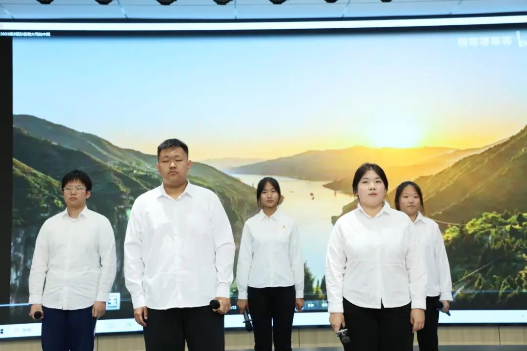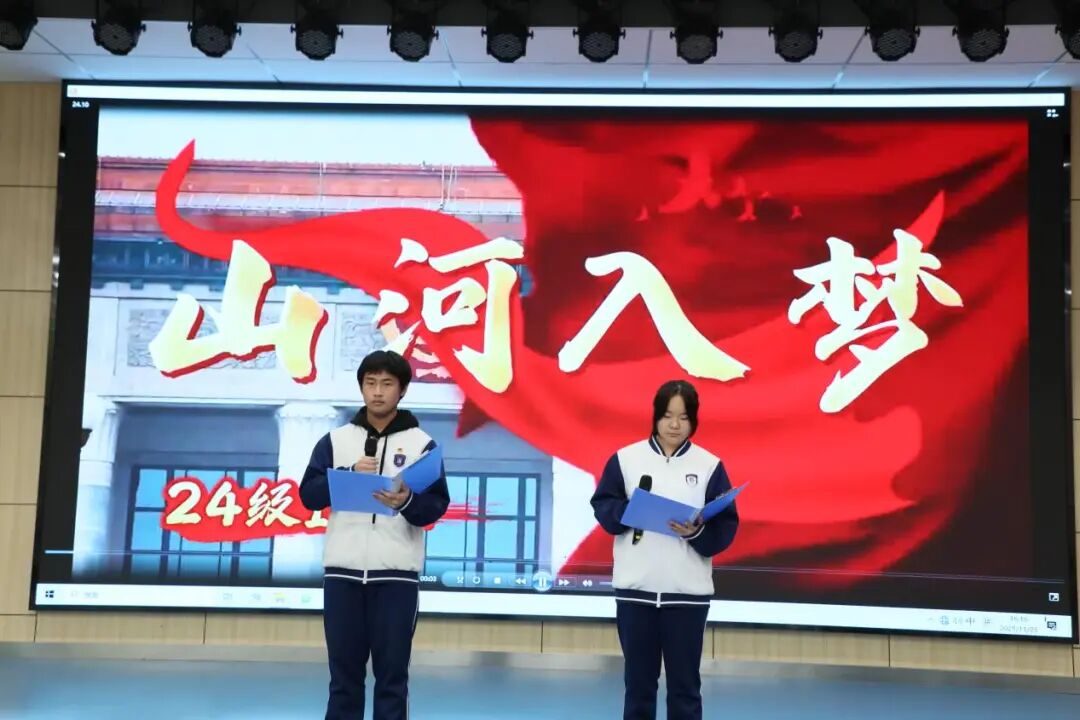 2024级10班蒋越舟与刘雯婷同学带来的《山河入梦》朗诵如穿时空,歌词里的山海壮阔与柔情交织,声韵裹挟着赤诚,让心沉浸于诗意幻境。2024级11班刘海燕,张天贺等同学带来的《信仰的火炬》燃情滚烫,声声传薪火、字字映初心,满是对信仰的敬畏与前行的力量。