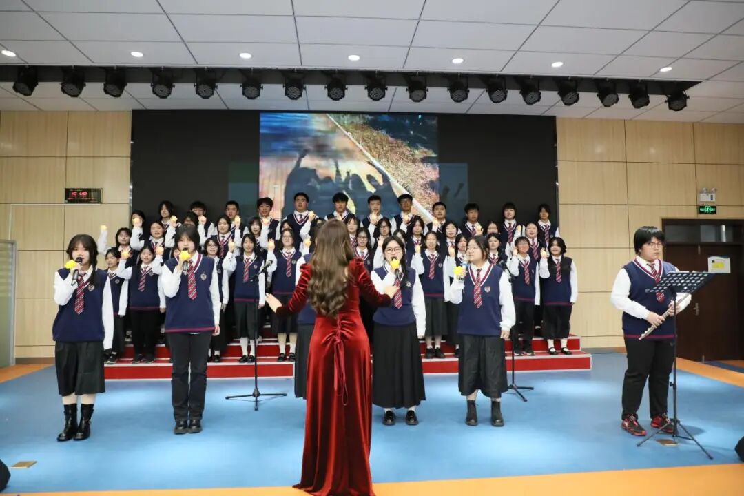 2025级1班、5班,2024级9班与2023级10班演绎的歌曲《小美满》,将日常的小确幸融入歌声,和声温柔治愈,传递出对生活的热爱与满足。2025级7班与2023级6班则以《星辰大海》展现恢弘气象,清亮的嗓音如微光汇聚成星河,“我向你奔赴而来”唱出少年人对远方的赤诚向往。