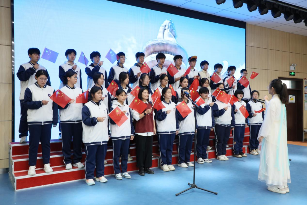 2024级1班、10班全体同学激昂唱响《我爱你中国》,歌声饱含深情,千声万声“我爱你中国”震撼人心,高低声部交织如见红旗飘扬、山河壮丽,每一声吟唱都涌动着自豪与滚烫的爱国情怀。