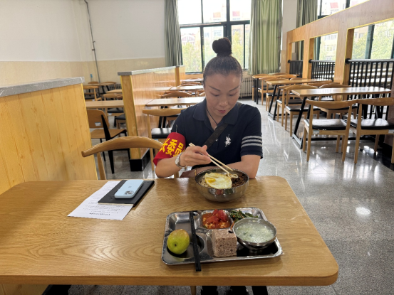 学校食堂韩经理带我参观了食堂后厨,我对调味品的购买、食材的摆放、做饭环境都进行了参观,食堂内菜品区分类清晰,荤素搭配合理,每一处细节都传递着学校对孩子们“舌尖安全”的高度重视。临近午餐时间,我跟随孩子们走进学校食堂用餐,工作人员身着干净的工作服,有条不紊地为学生打餐。取餐时,孩子们自觉排队、文明有序。据老师介绍,学校始终关注学生饮食健康,严格把控食材采购、加工制作等环节,确保为学生提供安全、营养、可口的饭菜。一顿简单的午餐,却让我感受到了学校后勤保障工作的细致与用心,也让我对孩子在校的生活更加放心。