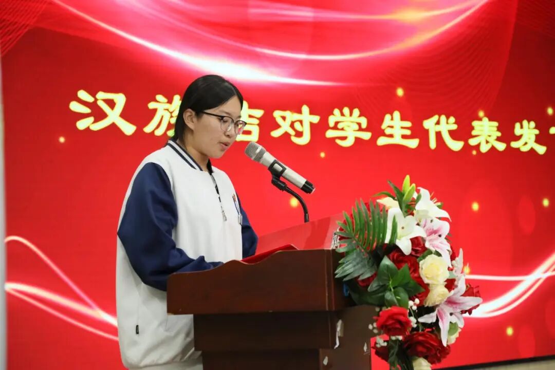 西藏班学生代表德吉曲珍与汉族班学生代表张呈田先后发言,表达了对学校与社会关爱的诚挚感谢,并立志勤学奋进、团结互助,为实现梦想而努力。