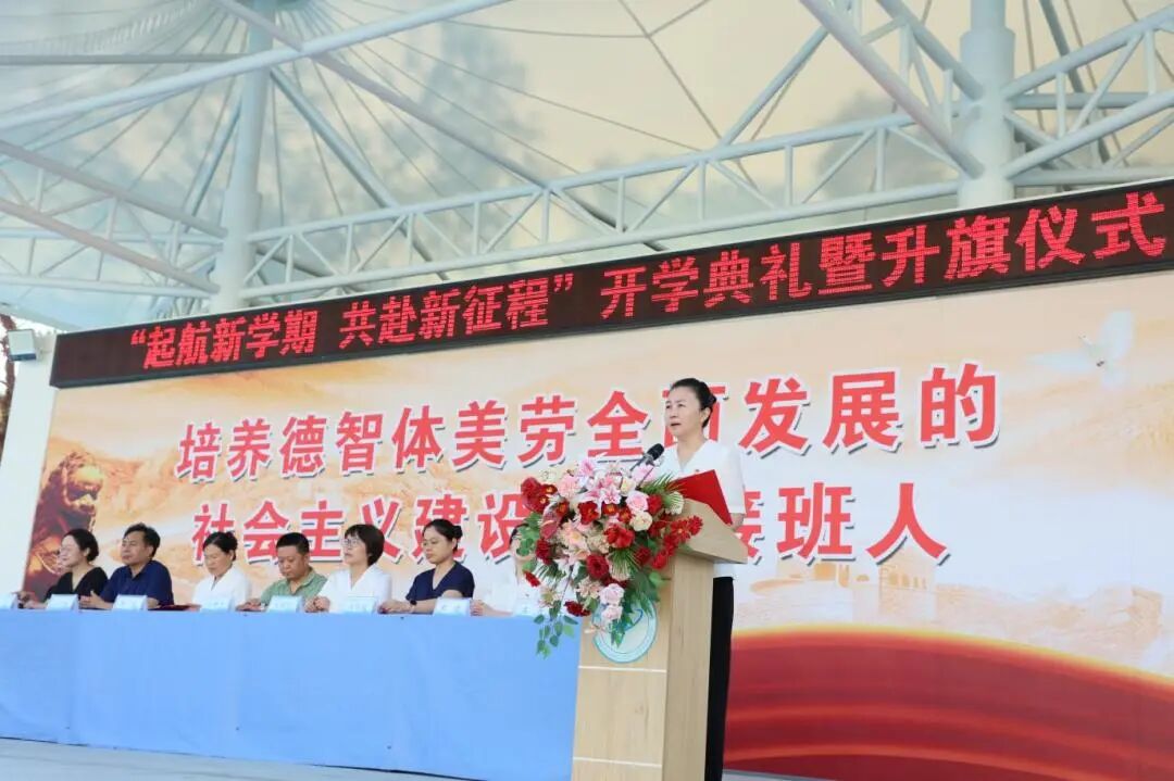 典礼在庄严的国歌声中拉开帷幕。国旗冉冉升起,全体师生肃立行注目礼,炽热目光中饱含对祖国清澈而坚定的热爱;嘹亮歌声响彻校园,传递着他们对新学期的美好期待与坚定信念。