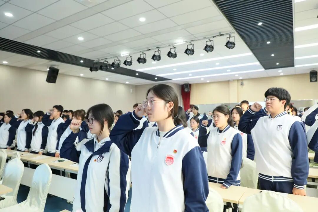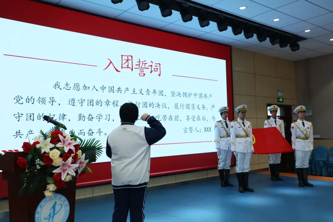 校组织部朱圣洁作为领誓人,带领全体新入团团员宣誓。新团员面向团旗,举起右手,跟随领誓人庄严宣誓,“我志愿加入中国共产主义青年团……”这誓言铮铮,回荡在会场的每一个角落,是他们对共青团组织的郑重承诺,也是他们肩负时代使命的决心表达。从此刻起,他们将以更高的标准要求自己,努力成为有理想、敢担当、能吃苦、肯奋斗的新时代好青年。