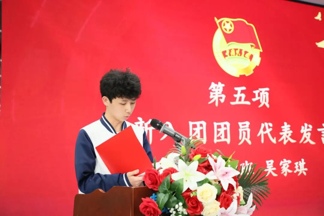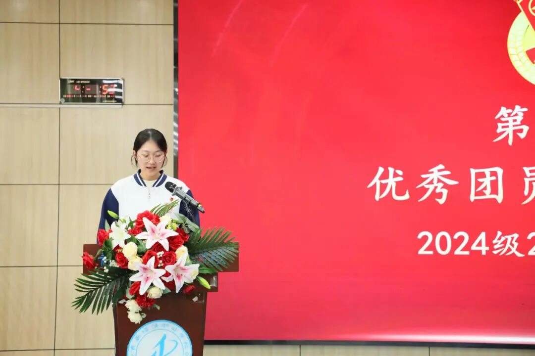 新团员代表2024级9班吴家琪同学表达了自己加入共青团后的激动心情及对未来学习生活的美好憧憬。优秀团员代表2024级2班陈姝旖同学分享了自己的大赛经历和感悟,鼓励新团员们要勇于挑战自我、不断追求进步,用实际行动践行新时代青年精神。
