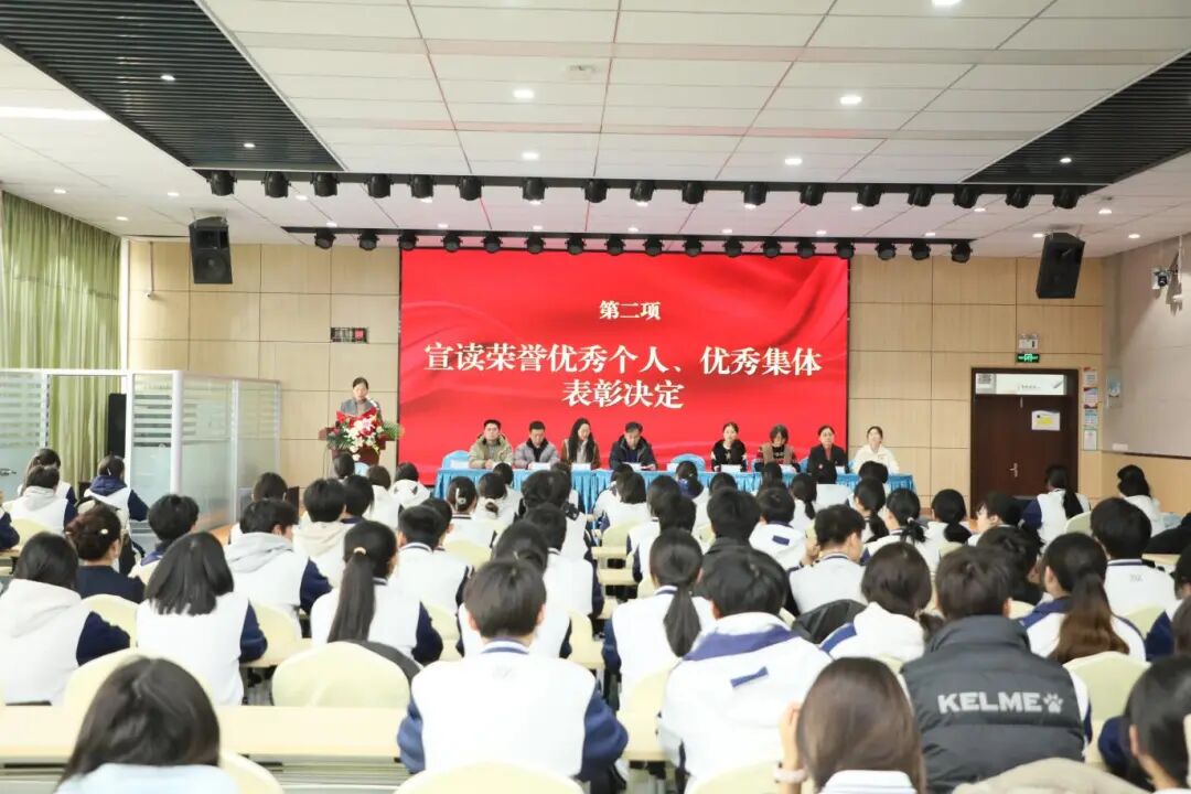 党总支副书记、副校长郭俭宣读校级优秀集体、优秀个人表彰决定。在过去一学期中,一批批品学兼优、技能突出的学子与团结奋进、班风优良的集体脱颖而出。证书在手,荣光在心。台上,获奖者意气风发,台下,掌声经久不息。这掌声,是向榜样致敬,更是向榜样看齐——愿每一位经济学子都能在追光路上,成为光、散发光。