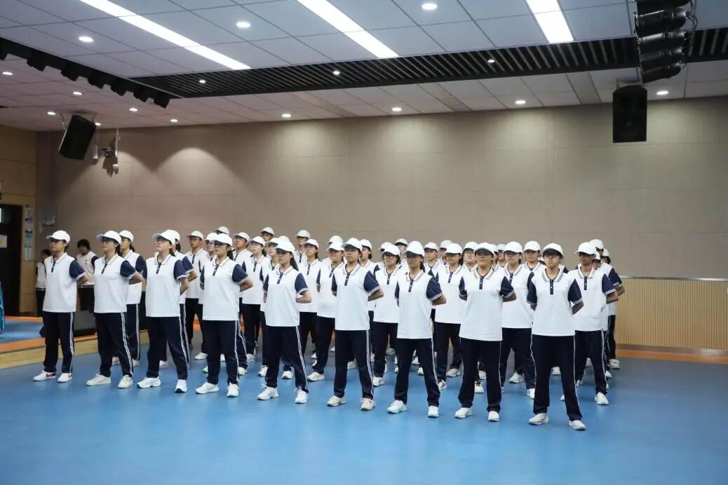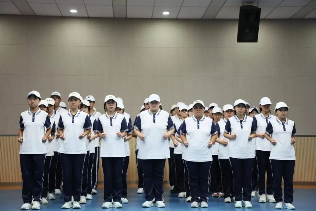 随后,军训会操展演正式开始。在教官铿锵有力的指令声中,2025级高一新生们意气风发、整装待发。他们步伐坚定、身姿挺拔,动作整齐划一,口号响彻会场。无论是立正、敬礼,还是踏步、转身,每一个细节都凝聚着一周来的汗水与坚持,展现出蓬勃的青春朝气与坚定的意志力量。