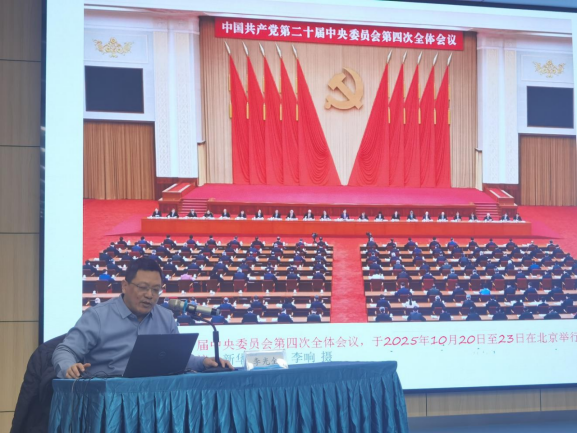 李教授围绕“十四五”规划完成情况、国内外形势、“十五五”规划主要内容等方面,对党的二十届四中全会精神进行了深入系统地阐释,特别是根据教育领域的发展实际,又对激发全民族文化创新创造活力、加大保障和改善民生力度等内容进行了重点讲解。他指出,党的二十届四中全会是在我国即将胜利完成“十四五”主要目标任务,进入基本实现社会主义现代化夯实基础、全面发力的关键时期召开的一次重要会议,对于全面建设社会主义现代化国家、实现中华民族伟大复兴具有重大而深远的意义。李教授的宣讲既有理论高度,又有实践深度,内容丰富、重点突出、条理清晰,为全体师生深刻理解和准确把握全会精神提供了有力指导。