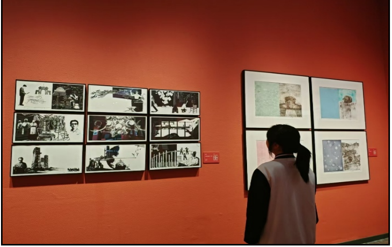 为深化活动成效,2024级9班团支部在展厅内开展了“艺术与青春”分享环节。团员代表张雨欣结合参展感受发言:“每幅作品都凝聚着创作者的匠心与思考,让我既感受到了中华优秀传统文化的博大精深,也体会到了艺术家们的时代担当。”大家纷纷表示,此次参观不仅拓宽了艺术视野,更激发了用青春力量传承文化、践行使命的热情。活动最后,全体团员在主题展板前合影留念,定格下此次艺术之旅的难忘瞬间。