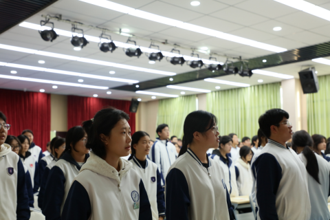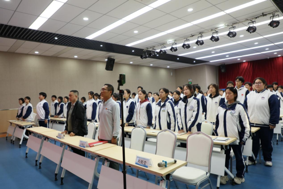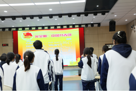 仪式最后,全体起立,齐唱团歌。嘹亮的歌声进一步激发了同学们的责任感与使命感。在团歌的余音中,主持人宣布开班仪式圆满结束,随即开启入团第一课。