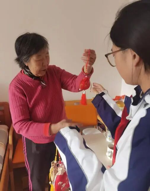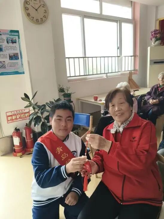 随后的陪伴时光里,同学们与老人们亲切攀谈,聆听长辈们的人生故事,分享校园里的趣事。有的同学为老人捶背揉肩,有的陪着老人漫步庭院,长者之家内处处洋溢着欢声笑语。一位老爷爷感慨道:“孩子们的到来让这里热闹多了,香囊贴心,知识实用,真是感受到了满满的关爱!”
