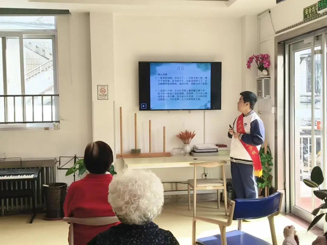 在“药食同源”知识科普环节,同学们结合老人们的日常生活,分享了常见食材的养生智慧。“生姜是厨房常用的调味品,冬天受凉喝碗姜枣茶能温中散寒;山药煲汤、蒸食都美味,能健脾养胃;枸杞泡水喝可滋补肝肾,这些都是咱们身边容易获取的养生好物。”同学们还特意关联香囊中的百合,补充道:“百合不仅能入香囊,煮粥时加一点,还能舒缓情绪、滋润身心,养生又实用。”现场互动热烈,同学们耐心解答老人们的疑问,让专业的中医药知识变得通俗易懂。