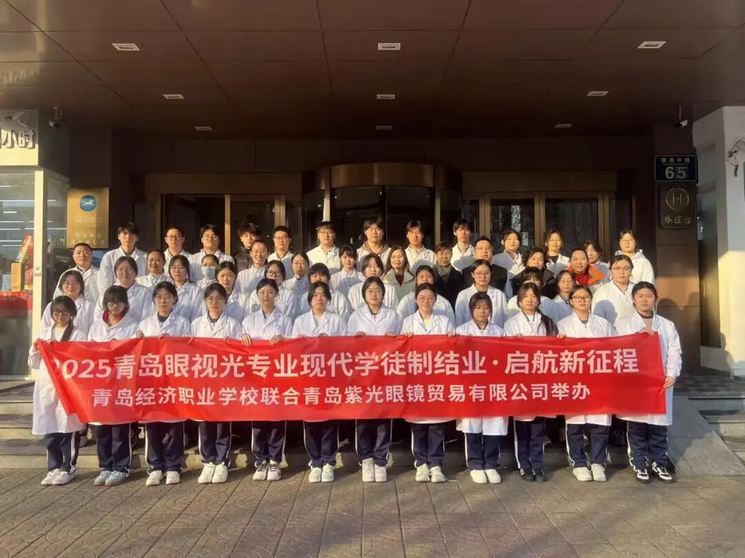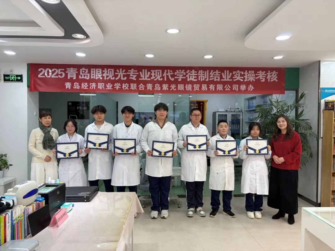 2026年1月23日“青岛经济职业学校 青岛紫光眼镜贸易有限公司 眼视光专业现代学徒制班学期考核”在青岛紫光眼镜贸易有限公司举行。学生每周前三天在学校进行基础性学习,周四、周五走出校园,进入紫光眼镜实训,学徒期一年。