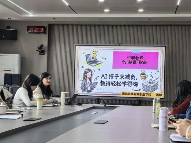 外事服务职业学校孟静老师主持了“数智赋能教研教学”专题研讨。她展示了AI技术及数字化工具在当前课堂教学、资源建设及评价体系中的应用案例,并就如何利用大数据精准教学、借助智能平台提升教师“四能”提出了独到见解,引发了与会教师关于未来课堂形态的深度思考。
