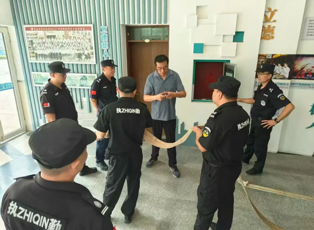 为确保新学期校园安全稳定,提升保安队伍整体素质与应急处理突发事件的能力,青岛经济职业学校于8月31日联合山东和兴保安服务有限公司,召开了2025年秋季新学期安保会议并开展消防及防暴恐演练。学校总务处主任肖传龙、保安负责人杨峥嵘、和兴保安公司副总经理乔政、薛龙以及全体保安队员参加了本次会议及会后的演练。