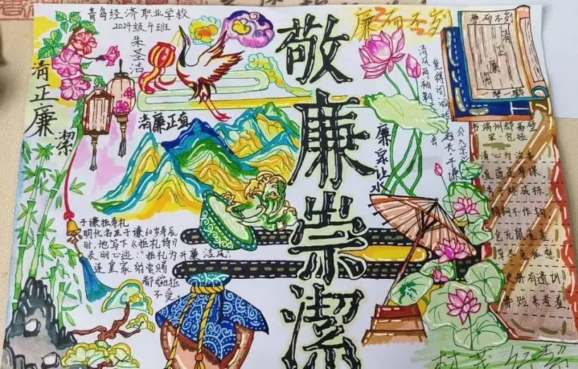 同学们理解“廉洁”的内涵,通过描绘寓意深刻的场景,传递清风正气,在心中筑起崇德向善的精神堤坝。