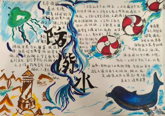 将安全教育融入艺术创作中。同学们通过描绘正确的游泳行为、危险水域警示、自救互救方法,形象化地传递“珍爱生命,预防溺水”的安全理念,让安全意识深入心中,筑牢暑期安全防线。