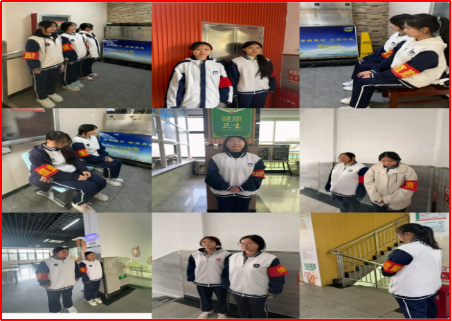 同学们身戴统一标识,以微笑迎接每一位师生,主动协助疏导通行、提醒规范着装;课间时分,他们化身“文明小卫士”,在走廊与楼梯间轻声劝导追逐打闹,守护校园秩序;食堂里,他们引导有序排队、倡导“光盘行动”,以实际行动传递节约风尚。