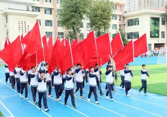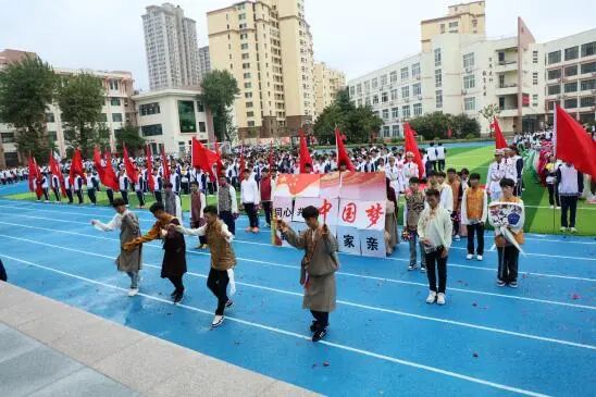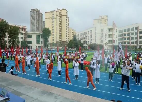 在激昂的运动员进行曲中,国旗队、彩旗队、花束队的步伐整齐、口号响亮,精神饱满地走过主席台。随后,各班级入场式方阵在班主任的带领下,逐一走到主席台前进行独具特色的创意展演,师生们不仅充分展现了班级风貌,也共同呈现了“经济人”的蓬勃朝气。