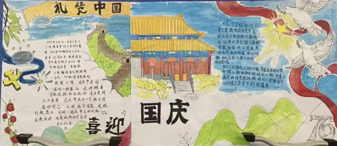 国庆与中秋双节交汇之际,青岛经济职业学校高一年级以“双节同庆”为核心,同步开展《喜迎国庆 礼赞中国》与《月满灯明 情满中秋》两大主题板报评比活动,在营造“家国同庆、情暖校园”浓厚氛围的同时,厚植学生家国情怀与文化自信。围绕《喜迎国庆 礼赞中国》主题的板报,版面设计色彩绚丽,展现了新中国七十周年余载辉煌发展成就,将国庆元素与青春理想深度融合,鼓舞同学们以昂扬姿态传承时代使命,争做担当民族复兴大任的栋梁之才;聚焦《月满灯明 情满中秋》主题的板报,通过手绘插画还原中秋节传统习俗,以青春视角解读中秋文化,引导同学们以传承之心守护文化根脉,争做中华优秀传统文化的继承者与传播者。