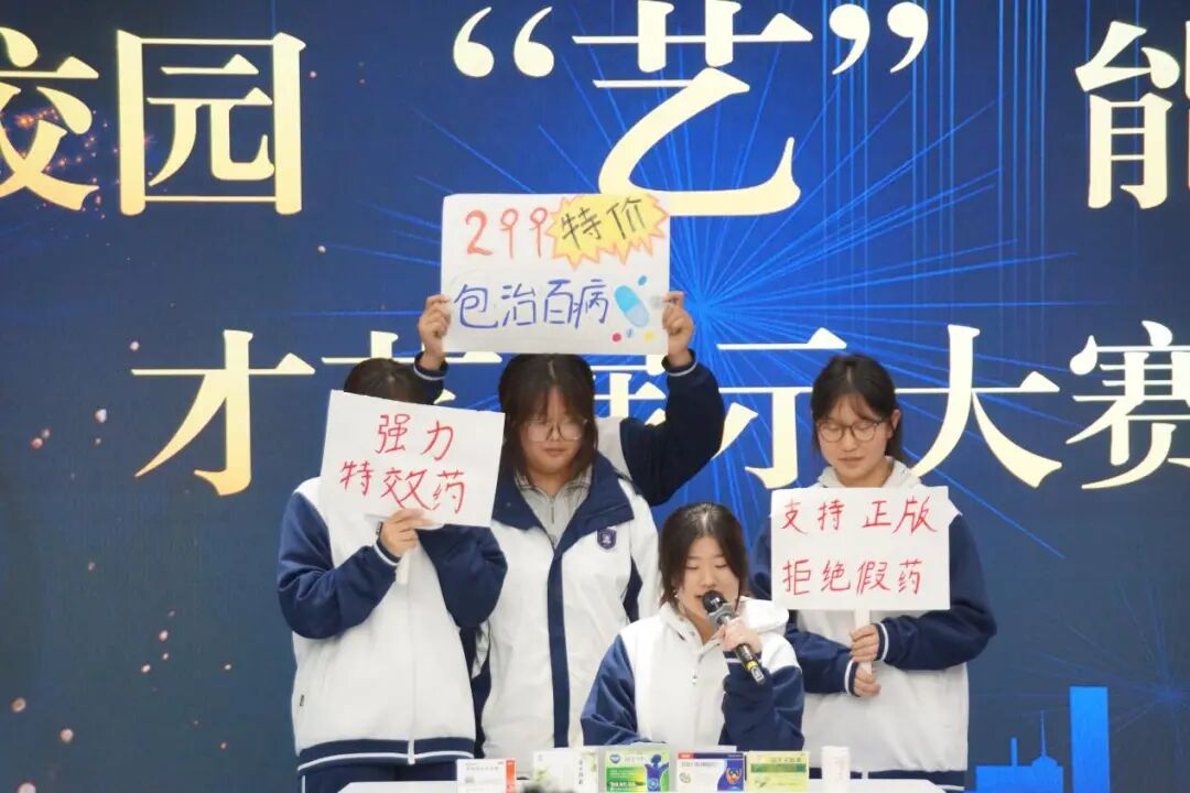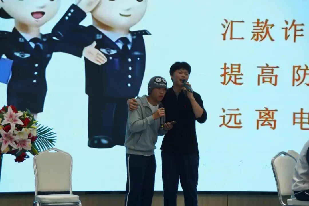 2024级7班的黄芮芮,刘瑞芮等7位同学的《带货风波》以轻松幽默的方式揭示了直播带货中可能存在的虚假宣传现象,寓教于乐,提醒同学们增强防范意识,理性消费。2024级10班程竣熙、孙裕杭、赵梓赫带来小品《反诈》,围绕诈骗故事最终自食其果的诙谐故事展开,情节跌宕、笑点频出,在轻松氛围中传递了反诈防骗的重要信息。