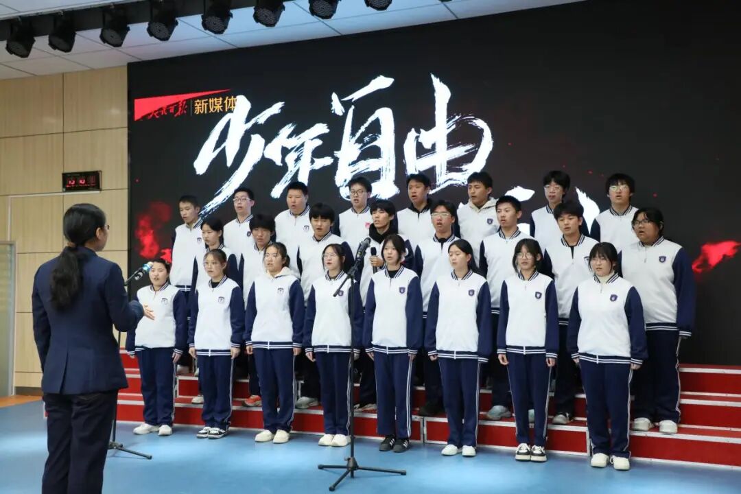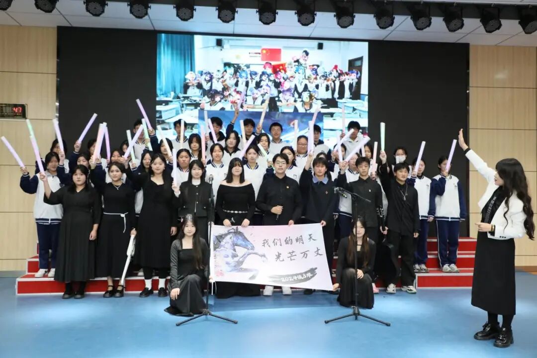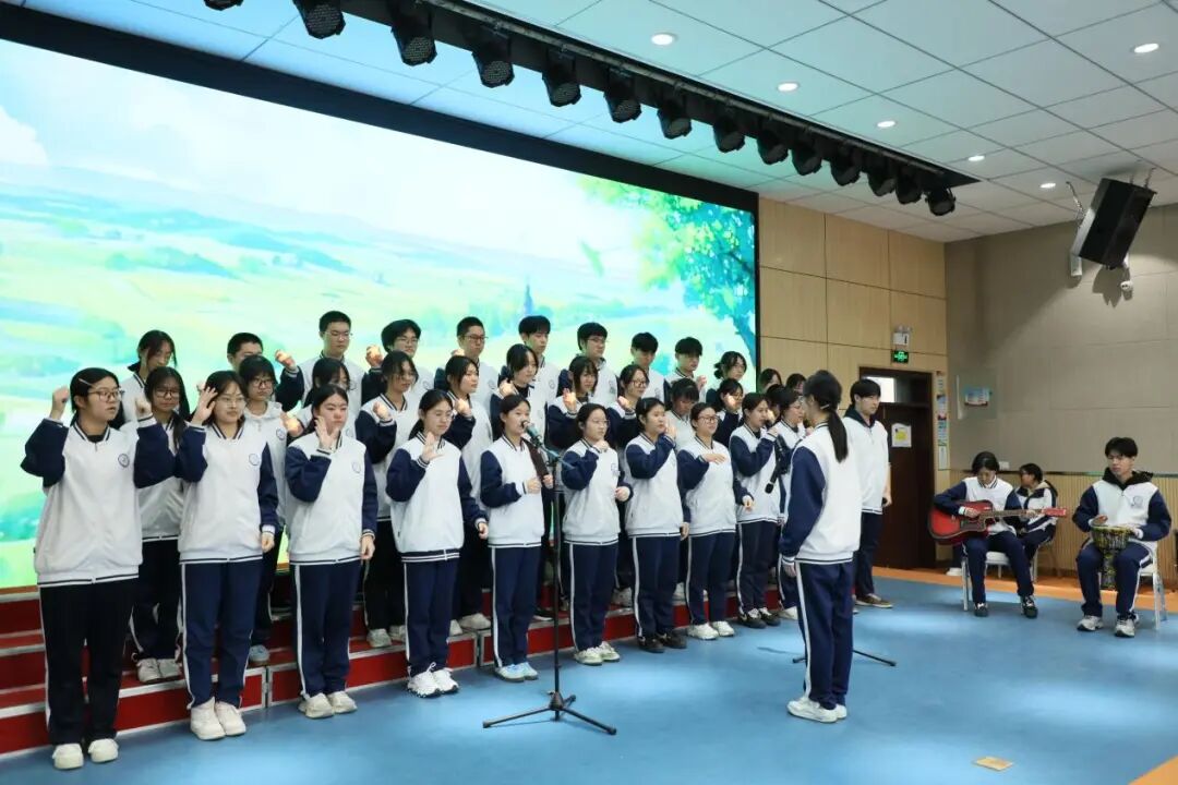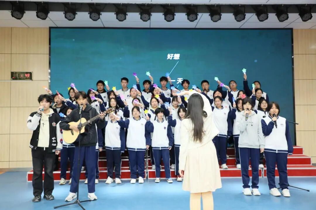 2025级8班,2024级2班、3班、5班、6班、8班、11班,2023级9班、12班与2022级8班演绎的歌曲《我们的明天》,青春之声汇聚成治愈的和声,仿佛众星并肩照亮前路。“奔赴共同的约定”饱含热忱,唱出了少年人对未来的无限憧憬与坚定信念。