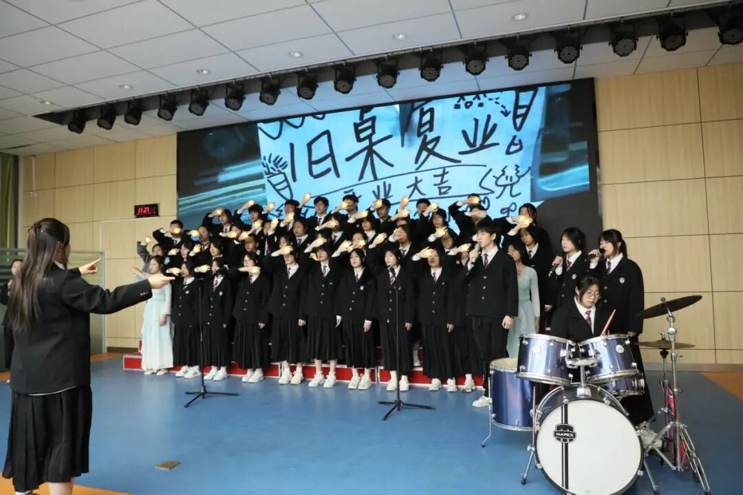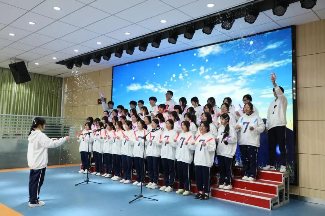 2025级1班、5班,2024级9班与2023级10班演绎的歌曲《小美满》,将日常的小确幸融入歌声,和声温柔治愈,传递出对生活的热爱与满足。2025级7班与2023级6班则以《星辰大海》展现恢弘气象,清亮的嗓音如微光汇聚成星河,“我向你奔赴而来”唱出少年人对远方的赤诚向往。
