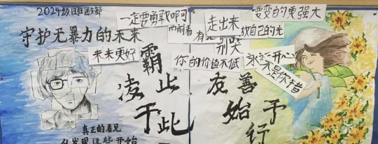 为筑牢校园安全防线,培育学生的法治意识与友爱精神,营造“互助互爱、和谐共生”的阳光校园环境,青岛经济职业学校高二年级以《阳光校园,拒绝霸凌》为主题开展板报评比活动。各班级积极参与、用心创作,版面风格鲜明醒目、内容兼具警示性与引导性:既通过情景漫画揭露校园霸凌的危害,又普及反霸凌的法律知识与求助途径,传递“对霸凌说不,为成长护航”的理念。板报将安全警示与青春担当巧妙结合,激励同学们主动抵制霸凌行为,争做校园文明的守护者与践行者。