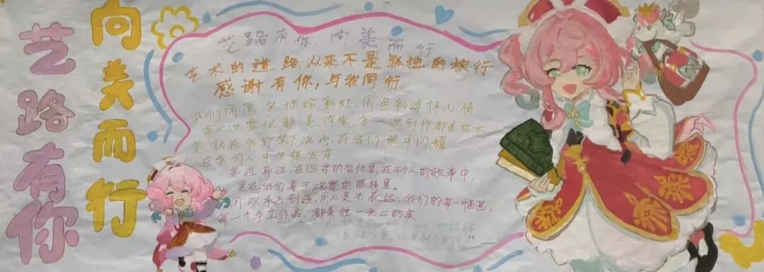 为丰富学生的美育体验,提升审美情趣与艺术素养,营造“以美育人、以文化人”的校园氛围,青岛经济职业学校高二年级以《艺路有你 向美而行》为主题开展板报创作活动。各班级将踊跃参与、创意挥洒,版面设计力求灵动雅致、内容兼具观赏性与感染力,通过手绘、拼贴等形式展现绘画、音乐、舞蹈等艺术形式的独特魅力,呈现出同学们在艺术实践中的收获与感悟,传递“以艺术为翼,绘青春华章”的理念。板报将艺术之美与青春风采深度融合,激励同学们在艺术熏陶中发现美、创造美,争做向美而行的追光者。