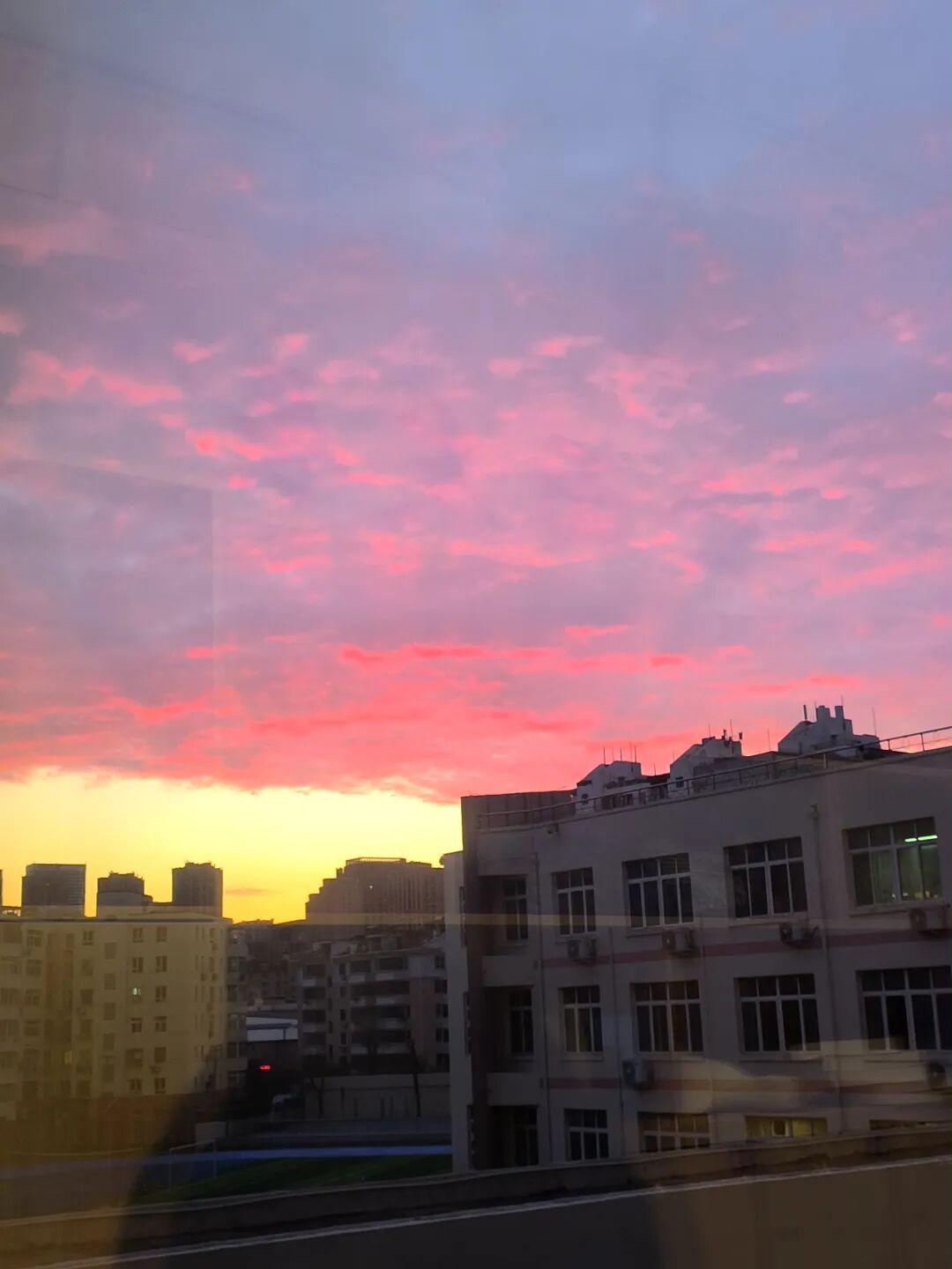 看落日把教学楼染成粉色