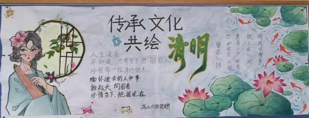 为深入传承中华优秀传统文化,厚植家国情怀,高二年级开展了“传承文化 共绘清明”主题黑板报评比活动。各班同学们巧心布局、挥墨抒怀,板报风格雅致庄重,既讲解清明传统习俗与历史渊源,又缅怀革命先烈、追忆先贤。将传统文化与青春信仰相融,让学生在笔墨间感悟文脉,树立传承经典、砥砺前行的初心。