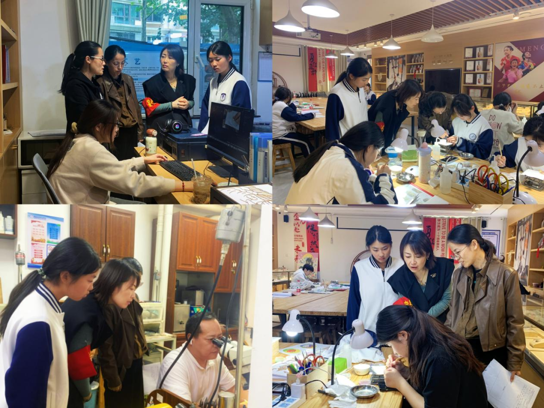 庄老师带领我走进“校企双导师模式”的产教融合中心,观看了同学们的参赛作品,也浏览了学校的获奖风采和荣誉事迹。走进操作间,这里有手艺精湛的匠人老师,也有初出茅庐认真做工的学徒,我近距离了解了首饰从加工到制作的流程,也见证了非遗珠宝技艺与现代科技融合。烧蓝毫厘精准、掐丝行云流水、烧蓝毫厘精准、3D打印勾勒未来首饰形态,失蜡铸造见证艺术蜕变……这些精湛的工艺,不仅让技艺传承可视化,更让00后匠人的成长路径具象化为可触摸的职业图景。