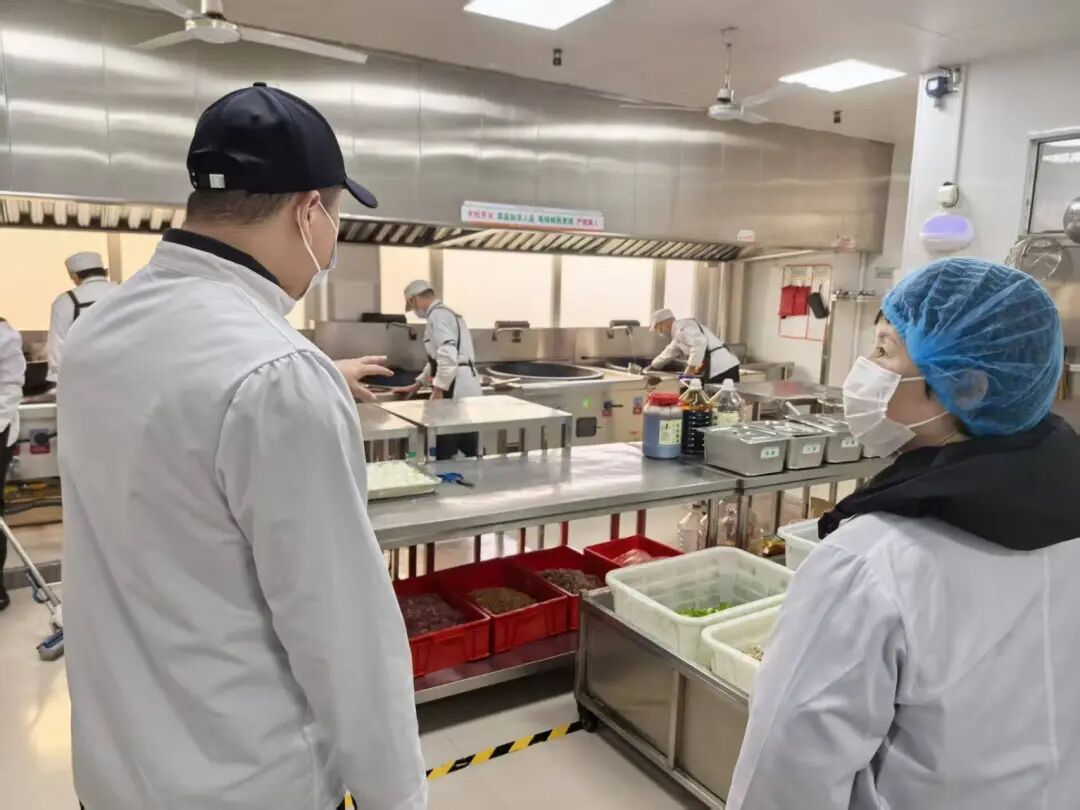 下课后,我们来到学校餐厅,按照卫生要求,我们戴好口罩、一次性厨房工作帽、鞋套,进入厨房工作间。工作间明橱亮灶,干净卫生,制度要求等都有序地张贴上墙,师傅们正在有条不紊地为孩子们准备午餐,品种口味丰富,能很好地满足孩子的午餐要求,让我们对孩子的学校就餐很放心。