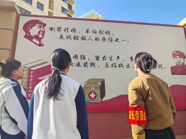 出了教学楼,步入校园的百草园,满目青翠映入眼帘。薄荷、迷迭香等常见药用植物整齐栽种,标牌上清晰标注着性味归经与药用功效。我驻足观察,看着展示牌上的讲解。孩子们告诉我怎样如何辨识不同的药用植物,它们的制作过程和功效,让我非常感慨,这才是真材实料的学习与传统中医药文化的传承。