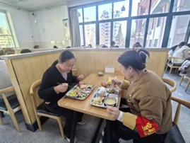 午餐时间,我与班主任一同在食堂就餐,品尝营养均衡的套餐。“饭菜味道好,分量足,孩子在学校吃饭,我们特别安心。”我边吃边说道。