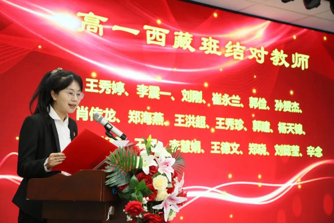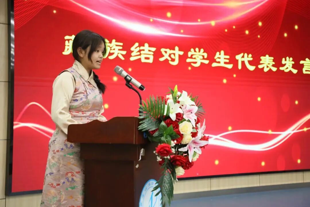 西藏班学生代表德吉曲珍与汉族班学生代表张呈田先后发言,表达了对学校与社会关爱的诚挚感谢,并立志勤学奋进、团结互助,为实现梦想而努力。