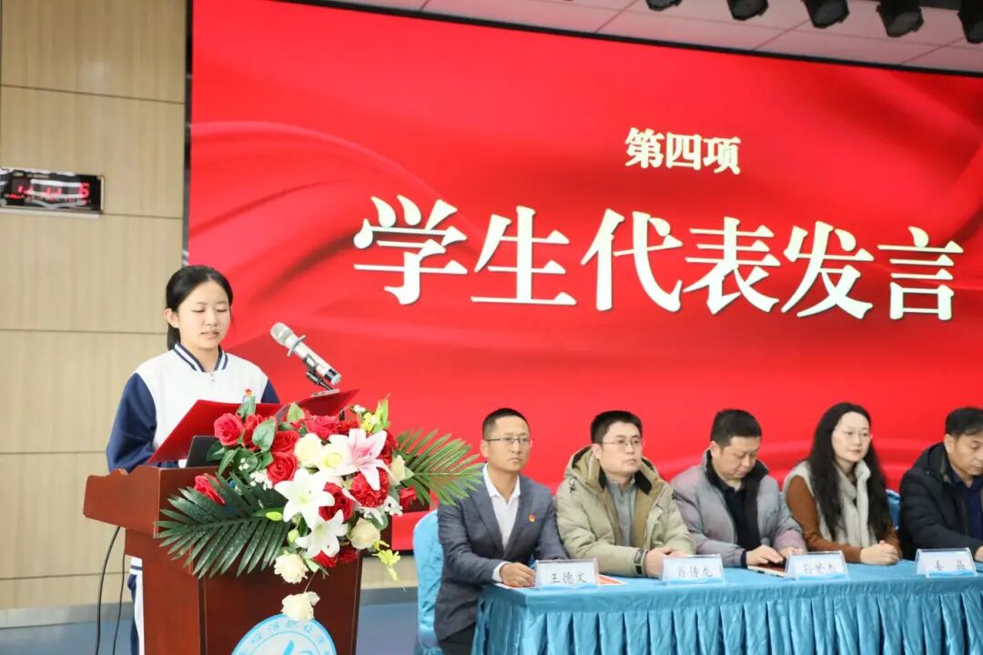 来自2023级7班的王泓木同学作为学生代表发言。这位刚刚结束实习重返校园的学子,分享了从课堂走向实习单位的真切感悟,“从理论学习到实践应用,这段经历让我第一次真切感受到知识的温度,也更加珍惜在校园的每一寸时光。”他号召全体同学以理想为帆、以汗水为桨,珍惜时光、提升自我,驶向成功彼岸。