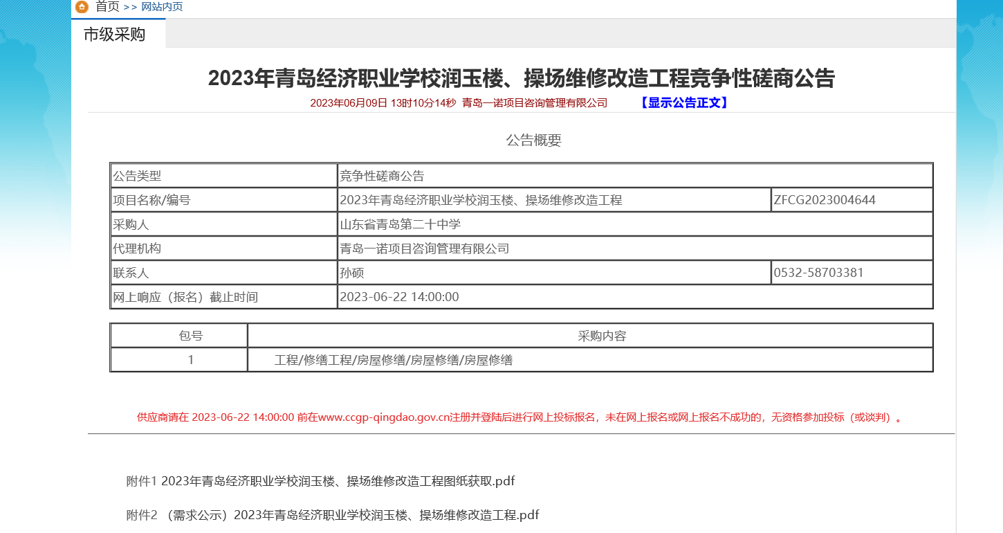 青岛经济职业学校2023年润玉楼、操场维修改造工程竞争性磋商公告